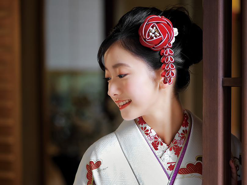 次に「動いたときの状態」を確認します。軽く歩く、腕を動かす、座るといった動作を行い、その際に引っかかるような感覚やズレがないかを見ておきます。実際の成人式では長時間着用するため、静止した状態だけでなく、動いたときの安定感も重要な判断材料になります。